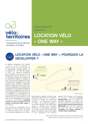Cette fiche-action décrypte les cinq leviers du « one way », présente des mesures opérationnelles pour les acteurs qui souhaitent développer et valoriser leur offre du « one way » et propose des pistes d’expérimentation pour aller plus loin. La fiche est agrémentée d’exemples de bonnes pratiques à l’échelle locale et européenne.